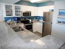 Our condominium offers guests the convenience and flexibility of having a full kitchen and dining area. This allows for a variety of daily options such as take-out, delivery, or cooking your own meals. Guests can also choose to dine out at one of the nearby seafood and specialty restaurants. The fully appointed kitchen provides the opportunity to wake up each morning and prepare a homemade breakfast before heading downstairs for a swim in one of the pools, a soak in the hot tub, or a workout in one of the resort's two fitness centers. The condominium’s dining area offers the perfect gathering place to enjoy a family meal featuring one of the local fresh catches cooked in the well-stocked full kitchen or on the grilling station poolside. All kitchens are fully equipped with full-sized range, refrigerator, dishwasher, microwave, coffeemaker, and blender, ensuring that guests have everything they need to prepare their meals.